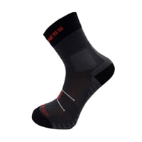 OFFROAD SOX jsou klasické ponožky pro letní jízdu v terénu. Středně vysoký střih, anatomické polstrování a zesílení dělají z tohoto modelu ideální volbu k použití jako opravdové offroadové ponožky na kolo do drsného terénu. K základní odolné ponožce je přidáno anatomicky tvarované froté, špička a pata jsou rovněž polstrované. Pro vyvážení extra polstrování je na nártu velká plocha síťky pro rychlejší transport vlhkosti z chodidla. Na prstech je použitý plochý šev, chodidlo je doplněno elastickým páskem, který zabraňuje nechtěnému pohybu ponožky při nošení. Zvýšená odolnost ponožky je podpořena extra krycím materiálem v polstrovaných oblastech.