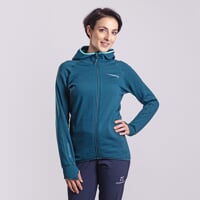 Dámská sportovní mikina TISPA HOODY MERINO je vyrobena ze značkového technického materiálu TECNOSTRETCH italského výrobce PONTETORTO, který ideálně plní požadavky druhé funkční vrstvy. V této nové verzi je TECNOSTRETCH obohacený o merino vlnu, díky které získáte ještě o něco teplejší druhou vrstvu, s přidanou hodnotou vlastností merino vlny, která hřeje i chladí přesně podle aktuální potřeby lidského těla, odolává zápachu i při dlouhodobém nošení a hřeje, i když je vlhká, navíc použítý polyester je 100 % recyklovaný. Tento skvělý materiál je lehký, z venku hladký a odolný, zevnitř počesaný a heboučký. Navíc je skvěle funkční. Zaručuje vysokou elasticitu, maximální volnost pohybu, vynikající tepelnou izolaci a rychlé osychání. Ploché švy zajišťují komfort při nošení.
